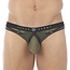 De Gregg Homme Erupt thong. Khaki en zwarte thong gemaakt van verschillende materialen. Een pareltje! Gregg Homme is een luxe Canadees premium heren ondergoed merk van de allerbeste kwaliteit.